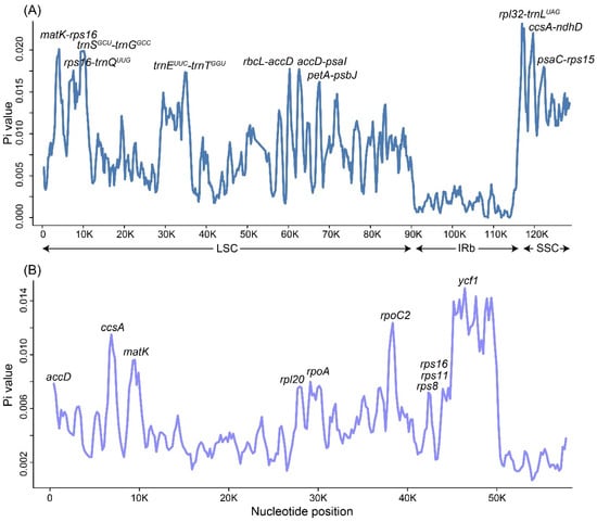 - Lee, S.R.; Kim, K.; Lee, B.Y.; Lim, C.E. Complete chloroplast genomes of all six Hosta species occurring in Korea: Molecular structures, comparative, and phylogenetic analyses. BMC Genom. 2019, 20, 833. [Google Scholar] [CrossRef] [PubMed]