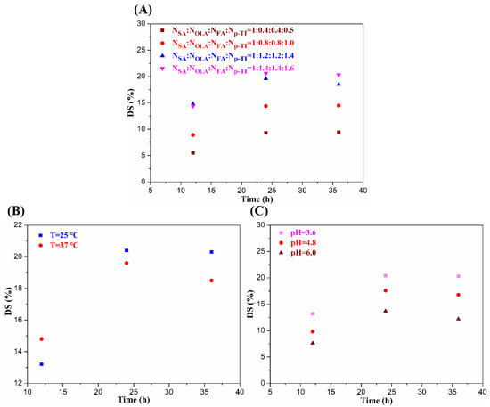 | NSA:NOLA:NFA:Np-TI | Time (h) | Temp (°C) | pH | DS (%) | Yield (%) |
