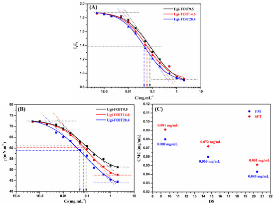 2.3.1. Amphiphilic Ugi-FOlT’s CMC Value