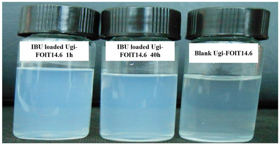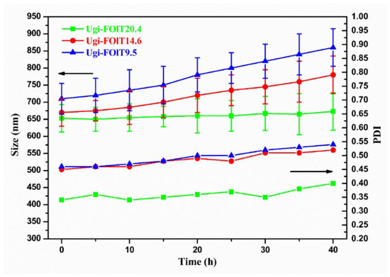 | Ugi-FOlT14.6 | 670 ± 35 | 0.35 ± 0.05 | −53.5 ± 2.1 |
