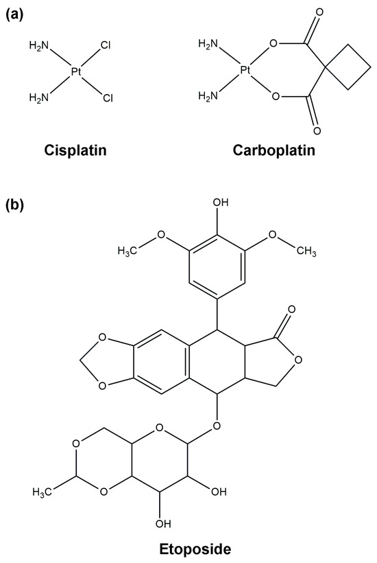 - Lassen, U.; Kristjansen, P.E.G.; Østerlind, K.; Bergman, B.; Sigsgaard, T.C.; Hirsch, F.R.; Hansen, M.; Dombernowsky, P.; Hansen, H.H. Superiority of Cisplatin or Carboplatin in Combination with Teniposide and Vincristine in the Induction Chemotherapy of Small-Cell Lung Cancer. A Randomized Trial with 5 Years Follow Up. Ann. Oncol. 1996, 7, 365–371. [Google Scholar] [CrossRef] [PubMed]