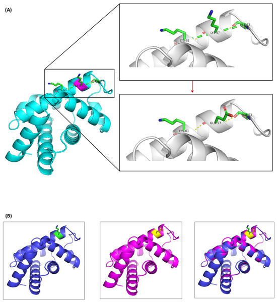 PolyPhen-2 models, a computational tool for predicting pathogenicity, classified the Hb SZ mutation as likely benign with a score of 0.241 (sensitivity 0.91 and specificity 0.88). This prediction was supported by a molecular model constructed using SWISS-MODEL (https://swissmodel.expasy.org/ accessed on 31 May 2024) and visualized with PyMOL software (Version 3.0.3) (Figure 6). In the native HBA2 protein, lysine at position 28 (Lys28) is located on a α-helix forming hydrogen bonds with Ser52 and Lys60 (Figure 6A). Importantly, PyMOL analysis revealed that substituting Lys28 with glutamic acid did not result in significant structural changes in the predicted mutant Hb tetramer compared to the native form (Figure 6B). These findings suggest that the Hb SZ mutation did not significantly alter the tertiary structure of the Hb tetramer.