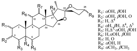 Skeleton and substituent numeration for spirostans and modifications studies.