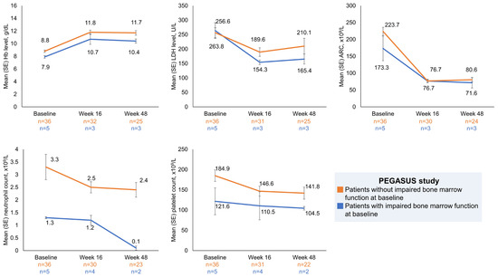 This post hoc analysis of the PEGASUS and PRINCE studies evaluated the haematological and clinical response in patients with or without impaired bone marrow function.