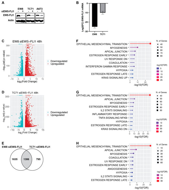 - Wang, J.; Jiang, W.; Yan, Y.; Chen, C.; Yu, Y.; Wang, B.; Zhao, H. Knockdown of EWSR1/FLI1 Expression Alters the Transcriptome of Ewing sarcoma Cells in Vitro. J. Bone Oncol. 2016, 5, 153–158. [Google Scholar] [CrossRef]