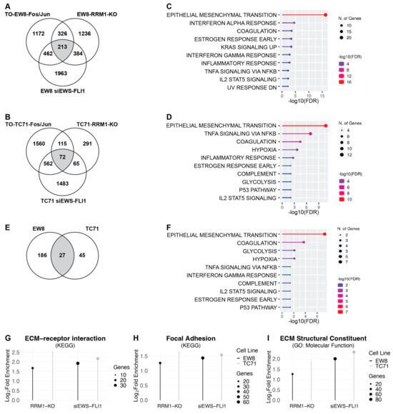 2.2. The Set of Genes Upregulated by RRM1 Loss, AP-1 Overexpression, and EWS-FLI1 Knockdown Is Enriched for EMT-Associated Genes