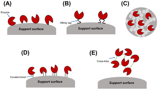 - Rodrigues, R.C.; Berenguer-Murcia, Á.; Carballares, D.; Morellon-Sterling, R.; Fernandez-Lafuente, R. Stabilization of enzymes via immobilization: Multipoint covalent attachment and other stabilization strategies. Biotechnol. Adv. 2021, 52, 107821. [Google Scholar] [CrossRef]