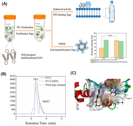 - Yuan, H.; Liu, G.; Chen, Y.; Yi, Z.; Jin, W.; Zhang, G. A versatile tag for simple preparation of cutinase towards enhanced biodegradation of polyethylene terephthalate. Int. J. Biol. Macromol. 2023, 225, 149–161. [Google Scholar] [CrossRef] [PubMed]