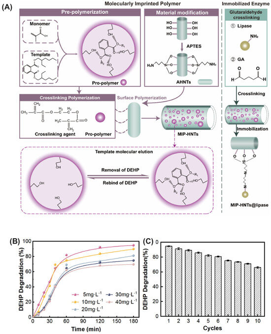 - Sun, Y.; Guo, M.; Hu, S.; Fang, X.; Jin, Z.; Wu, R. Nanosurface-immobilized lipase and its degradation of phthalate wastewater. Mol. Catal. 2022, 529, 112522. [Google Scholar] [CrossRef]