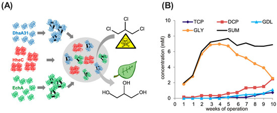 - Dvorak, P.; Bidmanova, S.; Damborsky, J.; Prokop, Z. Immobilized synthetic pathway for biodegradation of toxic recalcitrant pollutant 1,2,3-trichloropropane. Environ. Sci. Technol. 2014, 48, 6859–6866. [Google Scholar] [CrossRef]