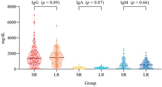 2.4. Total Plasmatic IgG, IgA, and IgM Levels