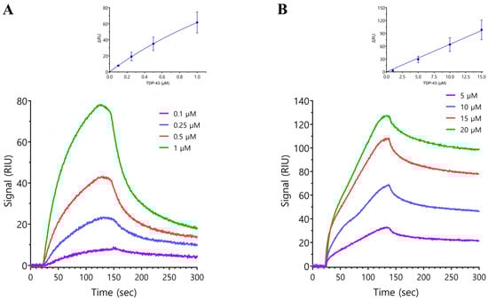Protein interactions were assessed using a Reichert 2SPR, SR7500DC System. Standard amine coupling (EDC/NHS chemistry) was used to capture commercially available recombinant SARS-CoV-2 N protein (Genscript) on a carboxymethyl dextran hydrogel sensor chip (Reichert (Buffalo, NY, USA)). The concentration of the N protein used for immobilization was 100 µg/mL and the amount of ligand immobilized was approximately 5000 µRIU. TDP-43 analyte proteins (GST-tagged full-length TDP-43, the N-terminus domain containing both the RRM1 and RRM2 domains, and an untagged full-length TDP-43) were dialyzed to running buffer and serially diluted to the concentrations indicated in running buffer (10 mM Hepes pH 7.5, 150 mM NaCl, and 0.1% Tween-20). GST-tagged full-length TDP (FL-TDP-43) was provided as frozen purified aliquots from E. Buratti as described above and the N-terminus TDP-43 was purified by our lab as previously described []. The untagged full-length TDP-43 used (Bio-Techne (Minneapolis, MN, USA)) is commercially available and was previously used for SPR interaction experiments []. Analyte concentrations of 0.1–1 μM FL-TDP-43, 5–20 μM N-terminus TDP-43 (TDP-431–269), and 0.01–0.5 μM untagged FL-TDP-43 were injected on both the ligand and reference channels at 35 μL/min for 2 min, with a 3 min dissociation time, at 22 °C. The GST protein (2, 10 and 20 µM) and the untagged TDP-43 protein were injected to evaluate possible unspecific binding of the GST tag on full-length TDP-43 to the immobilized N protein (note that the N-terminal TDP-43 protein does not have a GST tag). Buffer injections were used as blanks for the experiments. Sensorgram analysis and binding affinity (dissociation constant; KD) calculations were performed using steady-state analysis with the Reichert SPRAutolink (version 1.1.16), TraceDrawer (version 1.8.1), and GraphPad Prism 9.5 software packages.