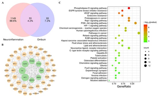 2.2. Network Pharmacology Predicted the Targets for Neuroinflammation of Ombuin