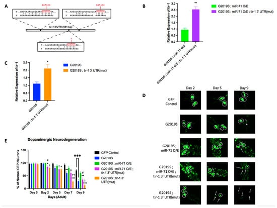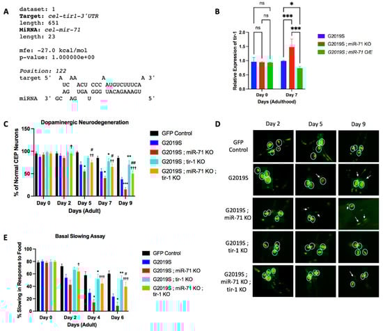 2.3. miR-71 Regulates tir-1 to Rescue Dopaminergic Neurons