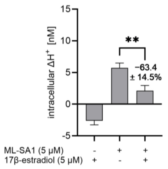 2.9. 17β-Estradiol Reduced the Proton Secretory Effect of ML-SA1 in HGT-1