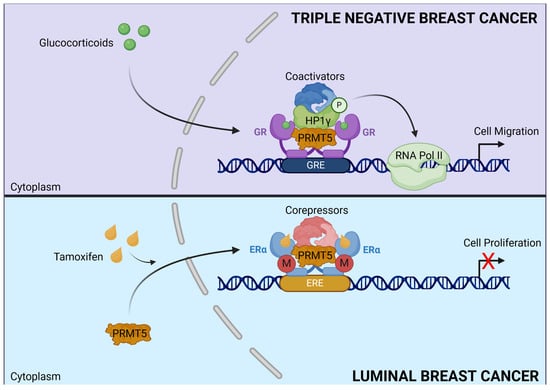 Martinez, S.; Sentis, S.; Poulard, C.; Trédan, O.; Le Romancer, M. Role of PRMT1 and PRMT5 in Breast Cancer. Int. J. Mol. Sci. 2024, 25, 8854. https://doi.org/10.3390/ijms25168854