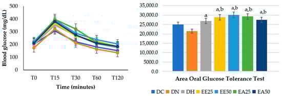 | EE25 | 210.67 ± 33.65 b | 366.25 ± 34.36 a | 265.36 ± 37.04 | 225.33 ± 41.17 a,b | 184.92 ± 30.76 b |