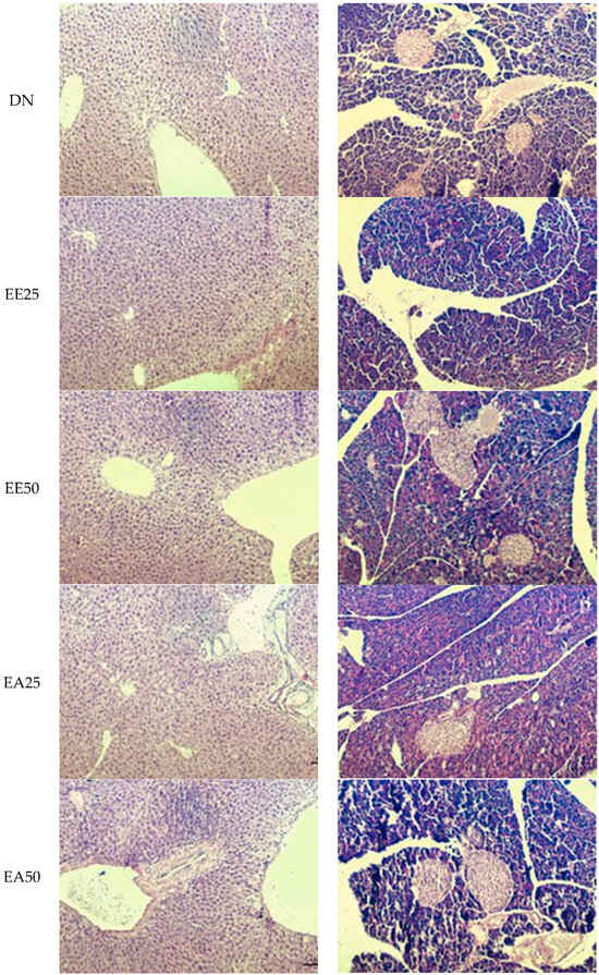 4.8. Histology of Epididymal Adipose Tissue, Liver, and Pancreas
