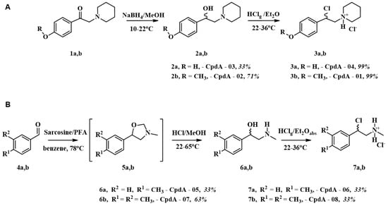 Synthesis of CpdA analogues (A) CpdA-01–CpdA-04; (B) CpdA-05–CpdA-08.