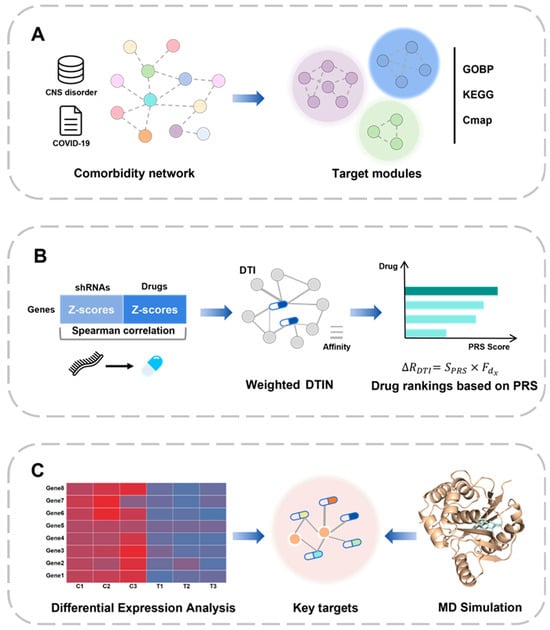 Qian, J.; Yang, B.; Wang, S.; Yuan, S.; Zhu, W.; Zhou, Z.; Zhang, Y.; Hu, G. Drug Repurposing for COVID-19 by Constructing a Comorbidity Network with Central Nervous System Disorders. Int. J. Mol. Sci. 2024, 25, 8917. https://doi.org/10.3390/ijms25168917