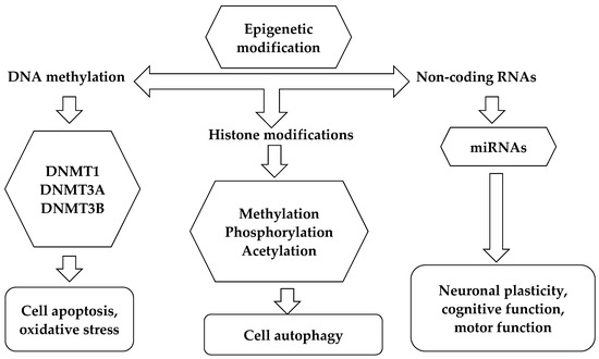 - Landgrave-Gomez, J.; Mercado-Gomez, O.; Guevara-Guzman, R. Epigenetic mechanisms in neurological and neurodegenerative diseases. Front. Cell. Neurosci. 2015, 9, 58. [Google Scholar]