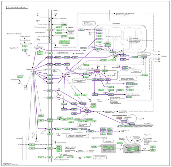 The AD pathway generated using KEGG (Kyoto Encyclopedia of Genes and Genomes) [] is presented in Figure 1.