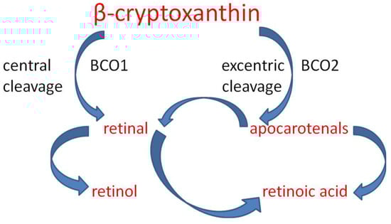 - Burri, B.J.; La Frano, M.R.; Zhu, C. Absorption, metabolism, and functions of β-cryptoxanthin. Nutr. Rev. 2016, 74, 69–82. [Google Scholar] [CrossRef] [PubMed]