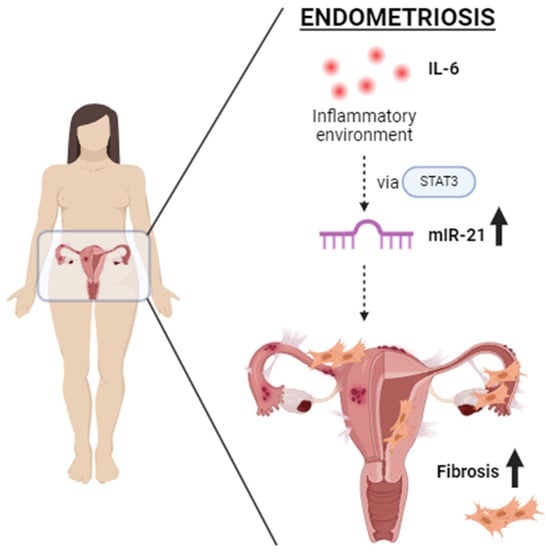 Proposed hypothesis: The inflammatory environment, particularly IL-6, in the peritoneal cavity of women with endometriosis can upregulate miR-21 via STAT3, leading to an increase in fibrosis in endometriotic lesions.