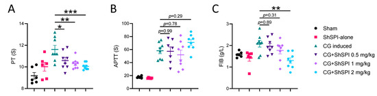 2.2. ShSPI Inhibits CG-Induced Coagulation Dysfunction