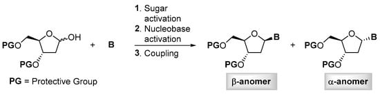 - Wang, H.-J.; Zhong, Y.-Y.; Xiao, Y.-C.; Chen, F.-E. Chemical and Chemoenzymatic Stereoselective Synthesis of β-Nucleosides and Their Analogues. Org. Chem. Front. 2022, 9, 1719–1741. [Google Scholar] [CrossRef]
