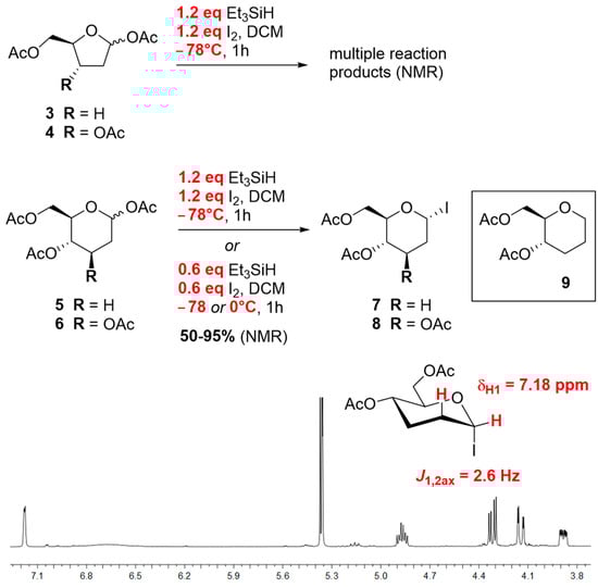 - Adinolfi, M.; Iadonisi, A.; Pastore, A.; Valerio, S. The I2/Et3SiH System: A Versatile Combination with Multiple Applications in Carbohydrate Chemistry. Pure Appl. Chem. 2011, 84, 1–10. [Google Scholar] [CrossRef]