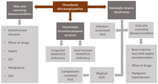 - Abou-Ismail, M.Y.; Kapoor, S.; Citla Sridhar, D.; Nayak, L.; Ahuja, S. Thrombotic microangiopathies: An illustrated review. Res. Pract. Thromb. Haemost. 2022, 6, e12708. [Google Scholar] [CrossRef]