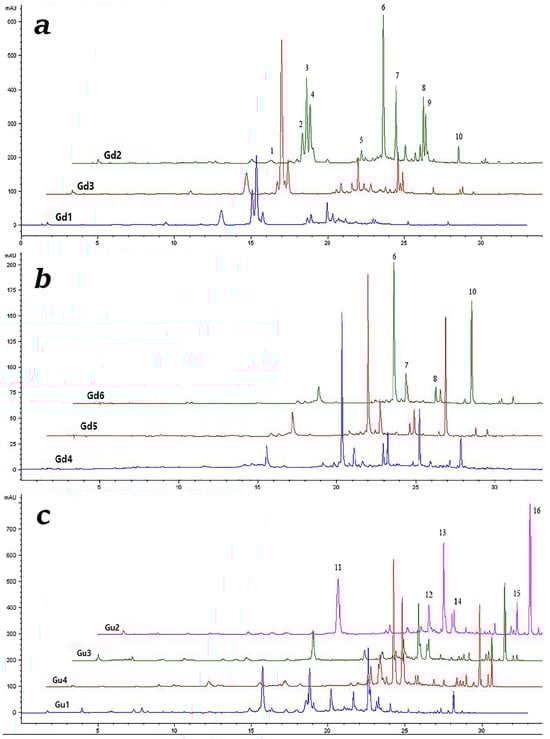 2.3. The Inhibitory Effect of Gd and Gu Extracts on α-Glucosidase