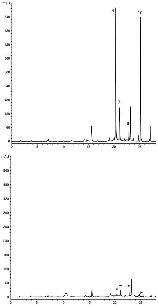 4.2. Extraction and HPLC Analysis of Secondary Metabolites