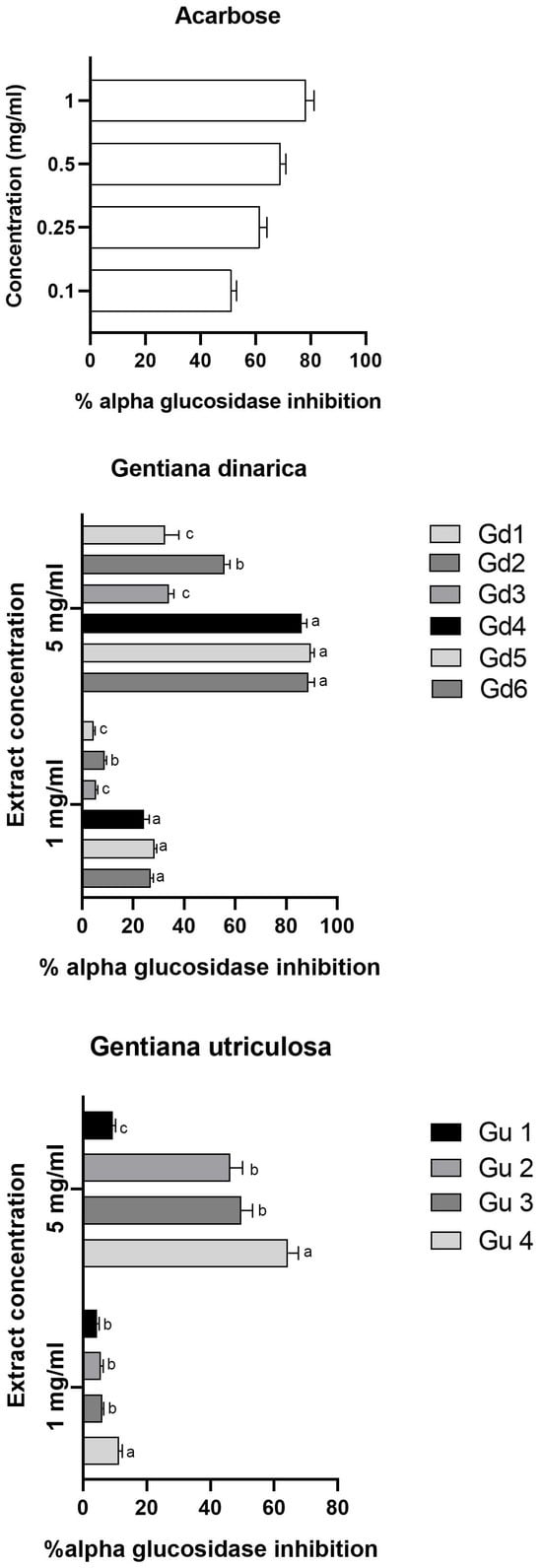 Evaluation of the Antidiabetic Potential of Xanthone-Rich Extracts from Gentiana dinarica and Gentiana utriculosa