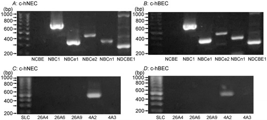 2.2. Expression of NBC and AE mRNAs Detected by RT-PCR in c-hNECs and c-hBECs