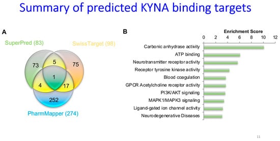 Unlike KAT I, the conversion of L-kynurenine to KYNA by KAT II is not significantly inhibited by other amino acids []. Taken together, preference for aminoadipate and L-kynurenine and the lack of inhibition by other amino acids might explain the importance of KAT II in preventing neurotoxicity. KAT II is responsible for as much as 75% of KYNA synthesis in most brain areas [,] and its downregulation has been related to numerous brain diseases involving KYNA depletion []. KATII might also be involved in the regulation of brain levels of aminoadipate [], a toxic metabolite for astrocytes in vitro and in vivo and part of lysine metabolism in the liver [,,].