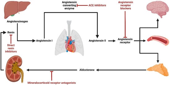 Due to this, several drugs lowering the activity of the RAAS (i.e., RAAS inhibitors) were developed and have been used for many years to prevent the events mentioned above (Figure 1) [12,20].