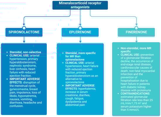 Clinical properties of most widely used mineralocorticoid receptor antagonists (created with BioRender.com).