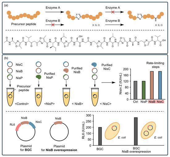 - Liu, R.; Zhang, Y.; Zhai, G.; Fu, S.; Xia, Y.; Hu, B.; Cai, X.; Zhang, Y.; Li, Y.; Deng, Z.; et al. A cell-free platform based on nisin biosynthesis for discovering novel lanthipeptides and guiding their overproduction in vivo. Adv. Sci. 2020, 7, 2001616. [Google Scholar] [CrossRef]