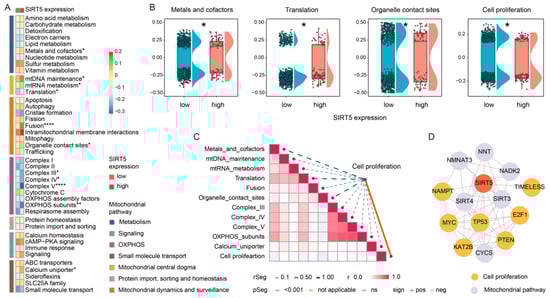 2.3. SIRT5 Potentially Regulates GBM Cell Growth through Modulation of Mitochondrial Pathways