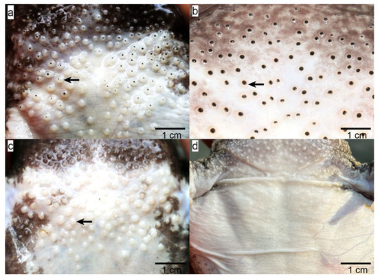 - Luna, M.C.; Mcdiarmid, R.W.; Faivovich, J. From erotic excrescences to pheromone shots: Structure and diversity of nuptial pads in anurans. Biol. J. Linn. Soc. 2018, 124, 403–446. [Google Scholar] [CrossRef]