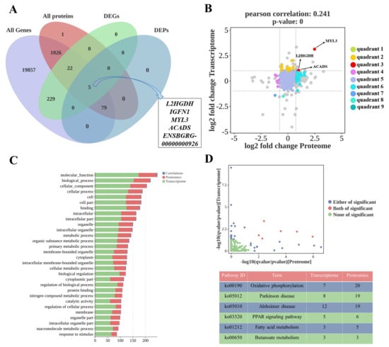 4.4. Combined Analysis of Transcriptome and Proteome