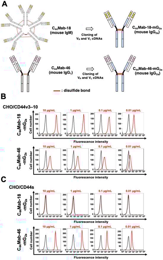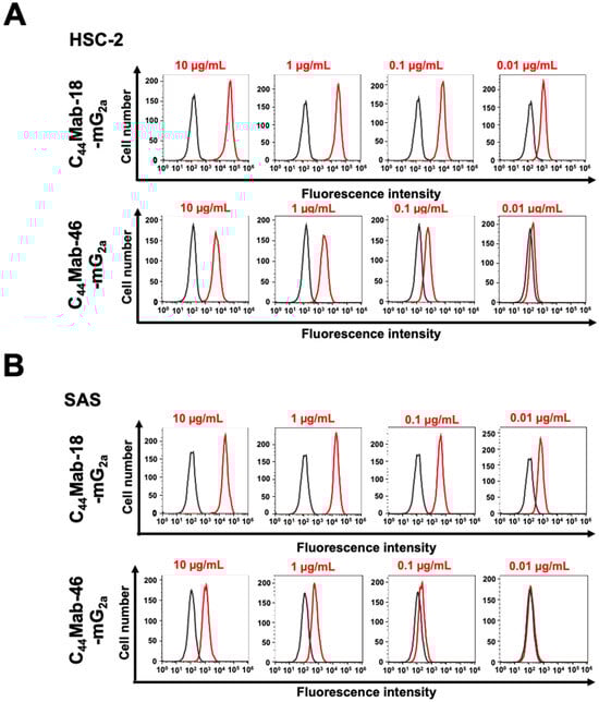 2.1. Flow Cytometric Analysis against CHO/CD44v3–10, HSC-2, and SAS Cells Using C44Mab-18-mG2a and C44Mab-46-mG2a