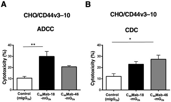 2.2. Induction of ADCC and CDC by C44Mab-18-mG2a and C44Mab-46-mG2a against CHO/CD44v3–10 Cells