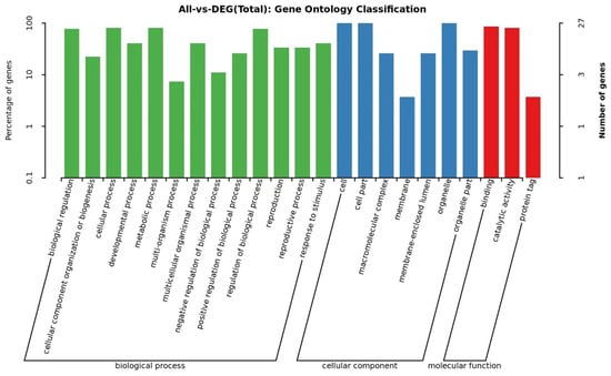 GO annotations of protein sequences provide insights into the biological functions of BrHAT genes. As shown in Figure 5. BrHATs in the category of biological processes include GO terms such as biological regulation, cellular processes, developmental processes, metabolic processes, multi biological processes, multi cellular biological processes, biological process regulation, reproductive processes, and response to stimuli. BrHATs were enriched in the following GO terms in the molecular function category: the regulation of binding, catalytic activity, and protein tag. Enriched GO terms in the cellular component category included the cell part, the macromolecular complex, the membrane, and the organelle part. These findings highlight the key role of BrHATs in regulating cell activities and catalytic processes.