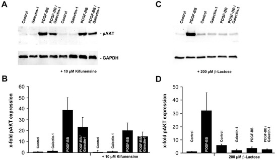 Inhibition of β-galactoside interactions reduces PDGF-BB- and hr-galectin-1-mediated AKT activation.
