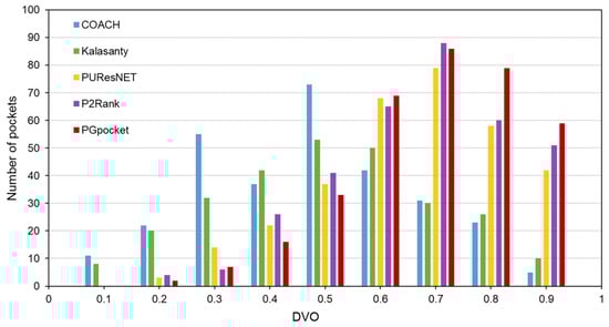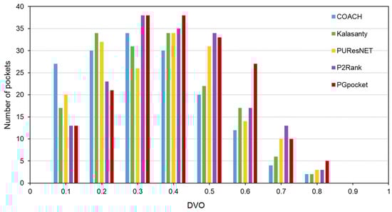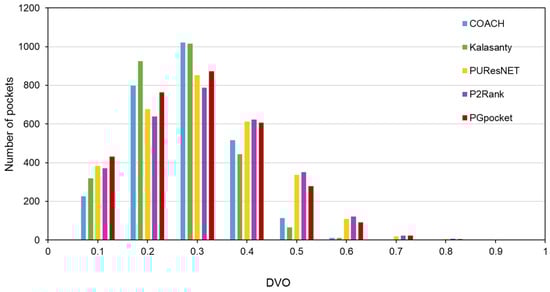Histogram of DVO values for PGpocket and the baselines on Coach420 dataset.