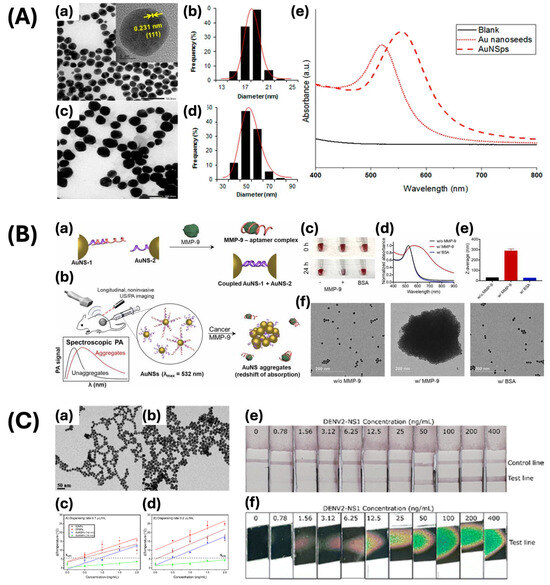 - Fan, J.; Cheng, Y.; Sun, M. Functionalized Gold Nanoparticles: Synthesis, Properties and Biomedical Applications. Chem. Rec. 2020, 20, 1474–1504. [Google Scholar] [CrossRef]
