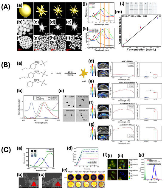 - Zhang, R.; Thoröe-Boveleth, S.; Chigrin, D.N.; Kiessling, F.; Lammers, T.; Pallares, R.M. Nanoscale Engineering of Gold Nanostars for Enhanced Photoacoustic Imaging. J. Nanobiotechnol. 2024, 22, 115. [Google Scholar] [CrossRef] [PubMed]